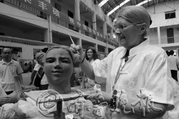 来自阿根廷的陶艺师薇尔玛·维尔沃德正在精心制作陶艺作品。 本报通讯员 闫盛霆 摄
