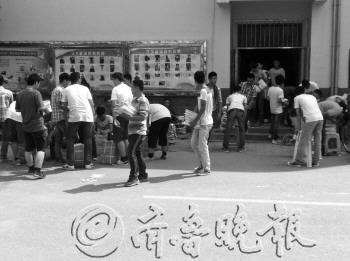 | 新学期第一天,不少学生都领到了新教材。 本报记者 张跃峰 摄 |