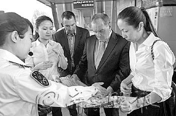 | 4日,芝加哥市前市长理查德·戴利在与济南BRT工作人员交流。