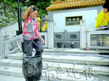 泉水是“圣水”相传能治病 除了是养育之水,斗母泉还是村民眼里的“圣水”,能治病、能保健。村民贾延芳今年76岁了,她的老爷爷曾经告诉她,年轻的时候他得了痢疾,肚子疼、拉血,发了十几天高烧还不退,很危险,听别人说喝泉水能治病,就连喝了两大碗,没想到居然病就好了。 在村民看来,泉水是有仙气儿、有灵性的,保护着这里祖祖辈辈的人。泉水旁还有座斗母宫,斗母奶奶是村民眼里的保护神。尤其每年正月十六斗母奶奶的生辰,很多人都赶来祭拜。 脚上有泥靠近泉,村民立即阻止 斗母泉的泉水也就成了村民的“命脉”,让村民们格外呵护。“我没事儿就坐在泉边,看到有人脚上有泥靠近泉水,或是有人要拿水擦车,就拦着他们。”村民们俨然已经成了泉水的义务看守人。而现在,泉水边又重新修整过,石砌的栏杆、专门用来下棋的石桌石凳、山上若隐若现的斗母亭,让斗母泉周边的环境越发好了。 “泉水以前从来就没断过,即便是旱季水流细成了一根丝儿,也还是照样源源不断往外流。”贾延芳说。在相关部门和村民们的共同保护下,泉水的明天也会流得越来越顺畅。