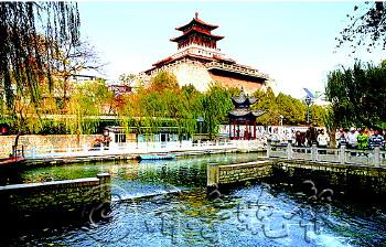 | 村民们每天都来挑泉水喝。 本报见习记者 万兵 摄 |  | 玛瑙泉位于黑虎泉东,护城河南岸,水泡从水底涌出,太阳一照,光彩夺目,如同玛瑙,水流河中。 |  | 一虎泉西,护城河中,以块石砌垒,池上有四面小亭,亭内设有坐栏,人可于内休息赏景。 |  | 五莲泉位于琵琶桥西侧护城河中央。池底较大泉眼有五个,水泡成簇,似五朵盛开的莲花。 |  | 解放阁与黑虎泉相望。1948年9月24日济南战役中人民解放军攻克济南时的攻城突破口。 |