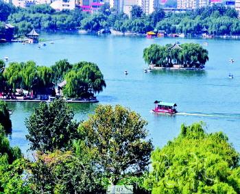 | 每逢盛夏,大明湖小沧浪水池中荷花盛开,清香弥漫,目之所及,碧波绿影,似彩霞,别致动人。 |  | 大明湖南门里,耸立着一座牌坊,整个建筑在阳光映照下,金碧辉煌,熠熠生辉,于是人们称它为“丹坊耀日”。 |  | 无论风和日丽,还是烟雨迷蒙,驾一叶小舟荡行于烟波浩淼的湖面,那情那景,令人陶醉其中。 |  | 坐落于大明湖路214号,北靠大明湖,南接芙蓉街老巷,坐北朝南,布局严整,地上建筑面积达4021.67平方米。 |  | 南丰祠位于东北岸,亦名曾公祠,是为纪念北宋著名文学家、唐宋八大家之一的曾巩而建。 |