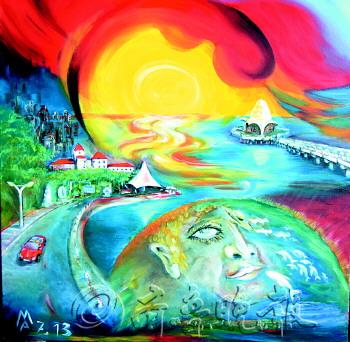 玉器杂项鉴定专家孔晨评价米歇尔的这幅作品——非常精彩。据孔晨介绍,一般的油画作品非常写实,米歇尔的作品既存在写实,又充满想象力。因为画家在烟台生活了一段时间,因此画上有烟台的海岸线,太阳下面,有海水有鱼类,是烟台海岸盛夏壮美的风景。周围的画框与画心融为一体,充满创造力。