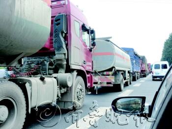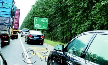 本报记者 张浩 李晓东 摄. |  | 应急车道上,车辆也是一辆接一辆。 本报记者 张浩 李晓东 摄 |
