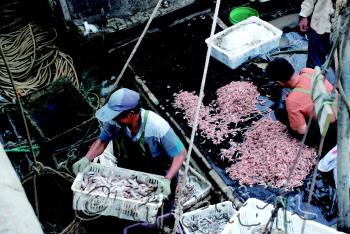 不过船老大反映,今年出海的第一网情况并不乐观,渔网里都是海蜇和小鱼小虾,价格较高的海货难见踪影,几乎所有船老大首航都赔了。