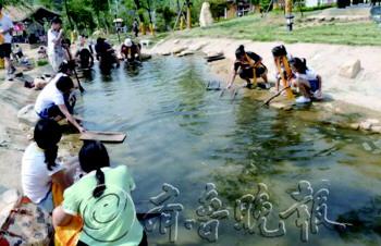中秋假日期间,本报将带领小记者一起走进中国金都——山东招远,开启黄金文化之旅。去往黄金博览苑参观中国不同历史时期黄金生产工艺、古今中外的黄金文化,50斤的金砖就展示在这里,这是一幅几千年来人类掘取黄金的贪婪和文明发展交织融合的历史画卷。 坐着矿车,下到罗山金矿180矿井,参观从古到今的采矿方法、设备工具、凿岩、爆破、通风、支护、扒装、运输、提升等黄金采矿的全过程,一览亿万年前火山地质活动行程的金矿脉,亲临宋代采金矿洞,感受挂锣橛的神话传说,拾金矿石,真正体验一回矿工生活。 身临淘金小镇,颇有穿越回宋朝之感,在这里,您不仅能品读源于宋代的国家级非物质文化遗产,还能领略风格古朴的宋代建筑和繁荣的市井风貌,身着古装的武大郎在街头和面叫卖烧饼,龙门镖局的武士们在您面前跳一曲江南style,还可以亲自参与淘金河淘金豆,淘到就可以带走。 晚上住宿在景区内半山腰,吃过饭后,散散步,中秋月圆,伴着嫦娥姐姐的月光,呼吸大自然……第二天醒来后参观拥有亚洲最大玲珑金矿田的亚洲第一金山——罗山国家森林公园,森林覆盖率在90%以上,被誉为“胶东森林大氧吧”。 这里也是电视剧——《战火大金脉》的主要取景地,可以欣赏到精彩的日军缴械、鲁家山结婚、赛马等剧情情景剧。如时间合适,还可去海水浴场自由活动。 想要参加活动的小记者带好小记者证,笔、本子、相机(可自愿携带),路上听从工作人员的安排。车位座次按报名顺序排列。活动中产生的费用需要自行承担,350元/人(包含交通费、景点门票费、住宿费、三餐、旅游意外伤害险),1.2米以下免门票。活动人数:45人 参考价格:350元/人(两日) 咨询电话:3210021 13954370239 报名截止时间:9月18日下午3点
