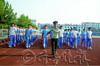 | 惠民二中的学生正在军训。 本报见习记者 王文彬 摄 |