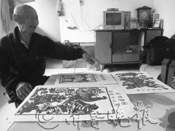 8月27日上午记者来到了孙武街道盖云台村,见到了71岁的盖敬德与72岁的张秀兰夫妇,已是金婚的他们在二十多年里剪纸不辍,练就一手绝活。从“游龙惊凤”到“戏水鸳鸯”,从“毛主席画像”到“十八大题材”,二老的剪纸花样繁多,精彩纷呈。四邻都喜爱他们的剪纸,纷纷“抢来”贴到了墙上、窗上、门上,于是剪纸就装饰了整个村。 文/片 本报记者 张峰 见习记者 王文彬 通讯员 田晓剑 从游龙惊凤到戏水鸳鸯,“农家画坊”一派喜庆 二老的农家小院里有剪纸的专属房间,屋不大,两面墙壁上却都挂满了剪纸,我们笑称为老人的“农家画坊”。屋正中的玻璃桌上,还摆放了一些还未完成的作品,有各式腾云驾雾的龙,也有吉祥的龙凤嬉戏、美丽的牡丹、戏水的鸳鸯、艳丽的孔雀等。 盖敬德说,旧时人们过春节,未必都能买得起鞭炮,穷人家就喜欢燃烧竹子,烧起来噼里啪啦响,这就叫‘竹报平安’。因此在剪纸中,竹子就寓意平安。从花鸟虫鱼、山水草木、民俗生活再到人物故事,这些题材也大多以大红色为主,是一种扑面而来的喜庆。 串门的邻居介绍,盖敬德老两口是40年的老鞋匠了,他平时和老伴给大家缝鞋、补衣、修拉链。老两口还常年去孙武养老院给老人免费修鞋。随着孩子们成家立业,家里只剩下老两口生活,他们就合计着剪纸“乐享”晚年。盖敬德老人负责绘图,张秀兰老人负责裁剪,从小花小草到复杂的图案,晚年生活在描描、画画、裁裁、剪剪中变得有味道。 剪纸可以养心,也可为晚年留下一些剪影 老两口结婚已52年,他们从小便相识,从恋人到夫妻,相濡以沫,互相搀扶。问及保持夫妻感情的秘诀,老人家则说,相互尊敬相互关心是感情美满的关键。 二老说,他们都是手艺人,剪纸可以养心,也可以为晚年的夕阳留下一些剪影。一有时间,老两口就坐在窗前,伴着轻音乐、戏曲,开始构图、造型、裁剪、装裱、张贴。完成了一幅,张秀兰老人总会小心翼翼地把它压好放入行李箱。采访当日,正值雨过天晴,早晨暖暖的阳光透过玻璃照射在身上,两位老人一边剪纸一边闲聊,留下两个安静的剪影。 “学习剪纸需要细心和耐心,能让人静下心来。”盖敬德说,一把剪刀,一张彩纸,可以描绘的景物却无穷无尽。逢年过节,四里八乡的群众都会慕名上门求“画”,或是为了装饰新房,或是为了增添年味。 走进中小学课堂,希望剪纸能传承下去 盖静德说,他特别想把这门手艺传下去,儿子、女儿推说剪纸麻烦,工作太忙,于是收徒之事一拖好多年。老人家有些怅然,说一幅作品往往需要剪几个小时甚至几天,年轻人性子急耐不住,没有决心、恒心。因此,剪纸大多成了老年人的“专利”。 在有关部门协调支持下,二老开始走进中小学生课堂,来到文化站、文化大院里,将剪纸免费送给友人。去年,老人家的剪纸参加了县里组织的非物质文化展览活动,透出一股别样的韵味。“自己剪纸是爱好,可以养心,让小孩子学剪纸为的是传承,让它以代代相传,经久不衰。”