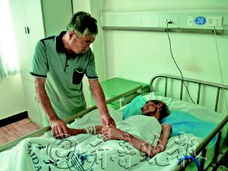 4日,本报C02版刊登的《初村一水库边惊现枯柴老人》一文引发社会多方关注。4日上午,老人亲属及村里相关负责人赶到海大医院认领老人,并为老人办理了住院手续。原来老人名字叫胡吉永,今年79岁,是羊亭镇南郊村一位村民,终生未娶,没有子女。 本报记者 冯琳 自闭老人突然爱上“离家出走” 胡吉才是胡吉永老人的堂弟,也是羊亭镇南郊村的村民,是目前胡吉永关系最近的亲人。据胡吉才描述,胡吉永一生性格内向,很不喜欢与人打交道。尤其是随着年岁大了,是名副其实的“老宅男”。 但自今年8月上旬起,老人突然很喜欢出门。8月9日的一天早晨,胡吉永突然出门,村民很讶异,但没多问,他也没同邻居和亲戚交代要去哪里。一连3天,大家都见不到老人踪影,胡吉才和几位邻居就近找了一阵,也没有找到。 12日傍晚,胡吉永独自返回村内。胡吉才及邻居询问其行踪,胡吉永只是回了句,“我就是出去溜达了,走时看到你们了,没跟你们打招呼。以后有机会我还出去。”这让邻里很吃惊,一是他平日很少与人交谈,二是他平时连家门及胡同都不愿意出,怎么会突然喜欢出走了呢? 老人的话,大家没放在心上,而且观察他的其他言行,也并无异常。但在回家的次日,老人再次离开。 大家起初并没放在心上,想起上次他出走3天回来后心情大好,以为老人只是出去散散心。可这回,一连四五天不见老人踪影,南郊村村主任杜善昭找到胡吉才询问情况,一头雾水的胡吉才也不知老人行踪,于是村里人分为几批开始在村里的山上及河边寻找老人,但没有收获。 亲属赶到医院 都称“认不出”老人 村里的村民见到媒体有关水库边的枯柴老人的报道后,觉得老人疑似胡吉永,但并不敢确认,因为老人太过消瘦。但村民立刻将消息反映到村委,杜善昭叫上胡吉才及村里几个人赶到海大医院。 随后,南郊村村委为老人办理了入院手续。原来老人是村里的孤寡老人,平时村委及村民都很照顾他。胡吉才说,“村民家里的花生蔓及烧不完的柴火,一般都会送到胡吉永家中,因为大家都见他孤苦一辈子,很可怜他。”而胡吉才本人也不时送饭给胡吉永,有时也邀请他到家中吃饭。但胡吉永生性孤僻,并不常走动。 老人一辈子没有娶妻,更没有子女。而老人的父母早已去世,只有一个亲妹妹,也早已经失去联系。老人在壮年的时候种地营生,年龄大了之后就靠村委及村民救济,偶尔会上山拾柴火,干点闲活。由于自己过了一辈子,所以老人什么家务活都会干。 看到目前剩下不到70斤的胡吉永,乡亲们说,“真认不出来了,瘦得太可怜了。” 老人见到亲属“振奋” 但情况仍不乐观 村委为老人垫付了几百元医药费,海大医院为老人免除了之前的检查费、住院费及监护费几千元。同时,老人被转到单间普通病房,将继续进行治疗及进一步检查。 老人在见到堂弟及村委干部后,张嘴想说话但发不出声音,精神明显比之前振奋。在堂弟握着他的手时,他也知道稍微握紧一些,但他始终无法翻身和说话。胡吉才说,老人之前体格还可以,如今身上的褥疮及划伤全是失踪后添上的,他们也不知老人为何到这种地步。海大医院急诊科负责人丛大龙说,已经进行了4天常规治疗,老人依旧无法进食,也发不出声音,情况并不乐观。这与他重度营养失衡及强度脱水有关,加上年龄大体质弱,所以无论是康复还是恢复都比较难。 医护人员每天为他进行口部、耳部等部位的清洗及护理,保证老人身体洁净,不至于再感染。防感染的治疗也每天坚持,老人见到亲属后似乎状态有所好转,但目前仍未脱离危险。还要看之后检查及治疗效果,才能论断老人是否能够康复。