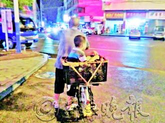作品描述:夜色中,一个老人推着一辆自行车,自行车尾架上绑着一个塑料筐,筐里坐着个带着书包的小男孩。 拍摄时间:8月 拍摄地点:东莞 作者:戚景源