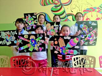 本报9月4日讯(记者 李孟霏) 法国的埃菲尔铁塔、北京的天安门、上海的东方明珠、埃及的金字塔……说到这些建筑,大家都不陌生,但如何解构这些复杂的建筑,从化繁为简学到知识呢?9月1日上午,本报10名小记者走进位于两岸商厦的优米少儿美术教育威海校区的课堂,在专业老师的指导下,体验旋转地球的建筑之旅。 喜好画画的小佩俐因父母工作忙便独自一人来到了教室,让老师们很感动。而爱好画画的孙小卜也早早来到了教室,看到了教室内美丽的涂鸦墙和其他孩子的优秀作品,她忍不住拿起画笔先练了起来。 “同学们,你们有仔细观察过我们身边的建筑吗?”一上课,帅气的沐沐老师便利用多媒体带领同学们观察以及分析了许多世界著名的建筑,引导孩子们进行思考。“金字塔是有三角形和长方形构成的”,“东方明珠是圆形、长方形和三角形的”,“天安门是由等腰梯形和长方形构成的”,孩子们纷纷答道。 “我们第一步先教孩子们如何解构,如果能做到这一点,那么在创作的时候,孩子们就能通过基本图形创作出他们想要的复杂建筑。”德国留学归国的常老师说。之后,孩子们走到窗户旁,用自己刚学的图形解构法来观察分析眼前更为立体的建筑,从而找到能够充分表达形象的规律。 通过15分钟的课前引导,孩子们早就按捺不住跃跃欲试的心情了,孩子们的内心小世界中都被创意充满了。很快,孩子们都拿到了属于自己材料,一张圆形的纸,一张白色的纸和一些彩色画笔,孩子们就要通过这些材料去表达自己心里的想法,还是很有难度的呀! 很快,孩子们的思绪便发力了,她们结合自己课程上所学的内容,用思维和感受来表达看到的世界。对色彩很敏感的孙小卜选择用对比强烈的蓝绿色画出自己内心世界;喜欢暖色系的白玉则用油画笔划出了柔和温暖的地球;李俊卉笔下的地球有一张可爱的萌脸,非常卡通…… 大约半个小时后,孩子们完成了创作,并将自己的建筑物和装饰物剪出来,一一黏贴到地球的周围。“我选择的是淡雅风,有江南水乡的感觉,圆形的建筑是受到了东方明珠塔的启蒙,”杨阳的画受到了老师的好评,而刘佩俐色彩搭配的敏感度也受到了老师的表扬。 我的世界我做主 这个星期天我参加了小记者“用画笔环游世界”的活动。早上我和妈妈来到了这家画室,看见画室的墙上有许多各种各样的画,有大的、小的,有画的,也有剪的,老师说这些画都是学校的老师自己画的,我从心里佩服他们。 这次的课程有点不同,我们先开始认识图形,有三角形,正方形,长方形和其他许多图形。认识完图形以后,老师领着我们用这些图形做了一些建筑,有埃菲尔铁塔,罗马斗兽场等许多世界知名的建筑。就在我想着要怎么画的时候,老师拿出一张圆形的纸张,让我们画出自己心中的地球,我涂的颜色非常丰富,随后我又在老师的指引下,划出了自己心中的建筑,怎么画才能好看呢?我一下子想到了刚才的图形,这也算是活学活用吧。 房子画完了,我闲着没事儿,又画了很多小的装饰,最后把自己的名字写在了一朵白云上,看到别的孩子画的特别有创意,我感觉有点不如他们,不过老师却表扬我的色彩搭配非常漂亮,这让我好高兴啊。 把自己心中的世界画出来,真是太有趣了,我期待下次奇妙之旅。