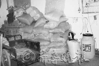| 用来酿酒的大米,被随意地堆在墙角。本报见习记者 郑雅莉 摄 |