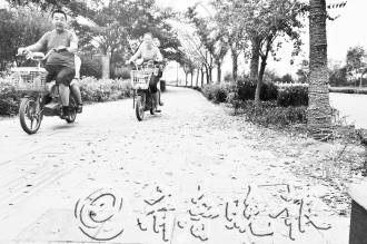 8日是白露节气过后第一天,枣庄在这一天里迎来一场降雨,空气中已有了较浓重的秋意。而一些对温度较为敏感的树木,也已经开始行动,将黄叶抖落。图为在东湖公园,市民骑车经过落了很多银杏叶的小路。   本报记者 袁鹏 摄影报道