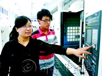 | 张玉香正在指导学生机床控制面板的操作。 |