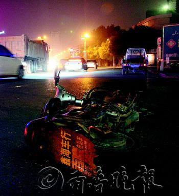 本报济南9月10日讯(记者 杜洪雷) 又一个鲜活的生命被渣土车夺走!9月10日晚上9时许,一辆右拐的渣土车在济南市成丰桥南侧路口与直行的骑电动车男子发生刮擦,被碾轧的男子经抢救无效死亡。目前,警方正进行调查。 10日晚上10时许,记者赶到了事发现场,此处是西工商河路与天成路交叉路口,位于成丰桥的南侧。在路口,记者发现一辆倒地的电动车,在电动车南侧不远处停着一辆渣土车。仔细观察路面,记者看到了一条长长的划痕,是电动车与路面摩擦留下的。 在人群中,记者看到一个手捂肚子,表情痛苦的女子。上前进行询问得知,女子姓鲁,事故中受伤的男子正是其23岁的侄子张西亚。据鲁女士介绍,当时她和丈夫以及侄子正准备回家。鲁女士和丈夫骑一辆电动车,侄子张西亚骑一辆电动车。他们沿着西工商河路由西向东走,准备直行过路口。“当时是绿灯,我在前面骑车过马路继续向东走,侄子在我们后面。突然听见一声响,然后看到一辆渣土车速度很快地从路口向南拐。”鲁女士往后一看,发现侄子张西亚和电动车都被渣土车刮倒在地上。“大货车轧到我侄子的身子还向前开,我骑着电动车就追上去了。大货车停下来,我就把司机给拉下来了。”鲁女士说道。很快,120急救车赶到了现场,在送到医院的时候男子就已停止了呼吸和心跳。 (奖励线索提供者丁先生 100元)