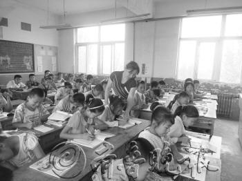 | 来自城里的支教老师正在给双峰联小的学生上课。 本报见习记者 王浩奇 摄 |