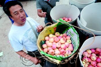本报烟台9月10日讯(记者 姜宁) 虽然还有将近一个月的时间,烟台的新红富士苹果才能上市,但最近记者在市场上发现已有商贩在叫卖“红富士”。 8日晚间,记者在烟大市场发现,因为大学新生刚刚入校,周围的人流量很大。“刚摘的红富士苹果,五块钱两斤,不甜不要钱。”一个商贩站在农用助力车上向路人推销着自己的苹果。因为价钱便宜,不一会儿,这些苹果就被抢购了不少。 “今年的红富士都还没上市,大概得等到国庆节之后才有第一批红富士苹果上市,每年基本都是这样一个时间上市,所以现在市场上卖的一般是早熟的红将军苹果。”栖霞市唐家泊镇的果农唐淑香告诉记者。 此外,据记者了解,在幸福河市场内和长途汽车站附近,也都有很多卖苹果的商贩,虽然大多数都会告诉记者这是红将军或者别的早熟品种,但也有部分商贩称这是今年的新红富士苹果。 “其实每年都有这种冒名顶替的情况,拿着红将军以及别的类似红富士的苹果提前上市冒充,不过今年情况比较特殊,因为9月份属于冷库苹果销售的‘尾盘’阶段,但今年价格比往年贵不少,批发价都到了5块钱每斤,所以商贩拿别的品种冒充红富士也是因为价格原因。”栖霞市宇冠果业有限公司经理林义杰告诉记者。 马上就要到中秋节了,很多企业和公司也都到了大批量集中订购苹果的时候,但是烟台市一家保险公司的总经理老宋却很头疼。“现在的红富士要么是去年的冷库苹果,要么就是红将军这类比较酸的苹果,新红富士没上市,大家都知道烟台红富士苹果出名,可买一些陈年的苹果发往总部,总觉得有些别扭。”