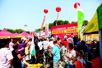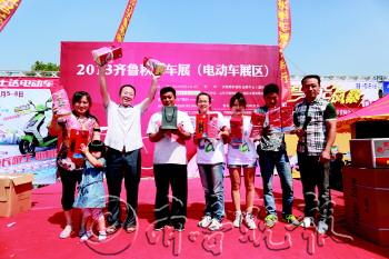 □韩杰 借车展,人气与销量双丰收 9月5日-8日,在济南舜耕国际会展中心室外电动车展区,1000余平米的场地上整齐划分出新日、澳柯玛、富士达、绿源与小鸟几大展位。在齐鲁车展开幕当天,室内展馆尚未开门纳客,电动车展区上就已经有不少消费者驻足,并与参展商达成交易意向。 在展区内,记者看到许多车辆上都挂着降价的标牌,不少车型售价仅为千元左右,个别车型“换购价”仅需数百元,超低的价格成为吸引消费者抢购的重要因素。在此次电动车展会上,购车观众可凭借手中的购车发票填写抽奖券。而根据最终收回的奖券数量统计,在车展四天时间里电动车展区总共实现销量548辆,出色的成交量让众多参展商喜笑颜开。 另外,济南舜耕国际会展中心作为豪华汽车品牌主展区,数万人次的人流量让整个展场人气爆棚。众多齐鲁车迷在进馆一睹豪车风范的同时,也为电动车展区贡献了一部分销量。在展会现场,一位购买电动车并幸运中得二等奖的观众刘先生告诉记者,原本趁着周末休息时间前来看看诸多豪华车,没想到最后骑着电动车回了家。 抽大奖,现场互动精彩不断 在此次电动车展区内,除了参展商带来的购车优惠外,电动车组委会还为购车消费者准备了百余份奖品。其中包括12块价值3000元的名牌手表、60份价值200元的酒水礼包,以及众多精美画框。在四天展会时间里,每天定时抽取奖品的环节都将现场人气推向高潮。 与此同时,在展会现场,几家电动车参展商也为观众准备了精彩的车辆展示活动。富士达电动车在现场玩起了飞车表演,以及电动车通过拱形桥等活动,出色的产品品质折服了不少现场观众;新日电动车则为观众带来新技术的演示:一块布满尖锐钉子的木板平放在地上,两名工作人员骑着车辆从钉板上通过,观众正在暗暗担心时,轮胎却安然无恙,创新的技术让众人啧啧称奇;在车展第三天,绿源电动车还举行了专场拍卖会,超低的起拍价格让现场观众频频举手,最终三辆特价车被出价最高的消费者成功带走。 在电动车展区内,幸运购车客户获得组委会送出的奖品。