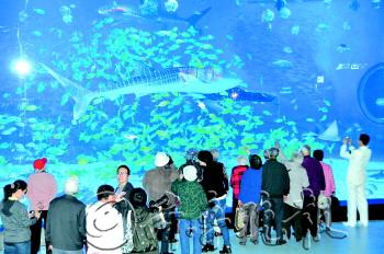 | 鲸鲨馆里的鲸鲨等明星吸引了大量游客前来参观。 鲸鲨馆供图 |