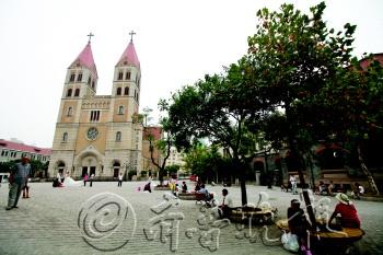 10日,在浙江路天主教堂广场,游人在新建的“树椅”下休息。据了解,目前浙江路和教堂广场的马牙石基本铺设完毕,新建的6处“树椅”已有5处投入使用,该工程将于近期完工。