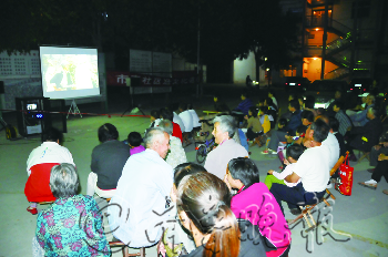6日晚7点30分,市南社区举行文化电影节。在水利工程处小区,晚7点左右电影屏幕前就坐满了观看的市民。市南社区刘书记说:“我们不只播放电影,还在片头宣传消防安全知识。因为这是电影播放的第一站,所以只在住户比较多的小区进行的宣传,来看的人很多,效果还不错。”
