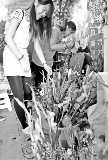 | 在健康路东昌路交叉口的一处花店内,不少学生在为老师选花。