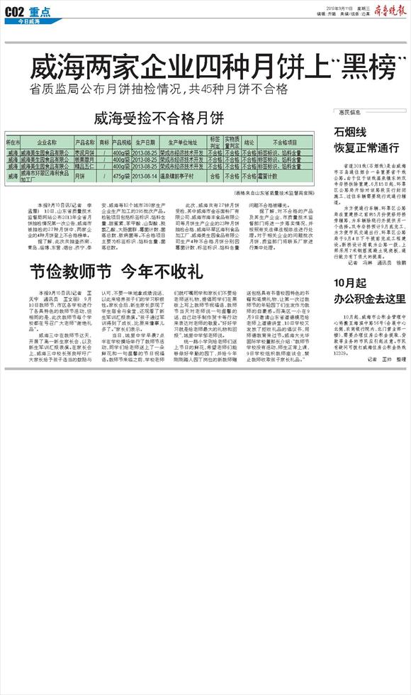 威海两家企业四种月饼上“黑榜”