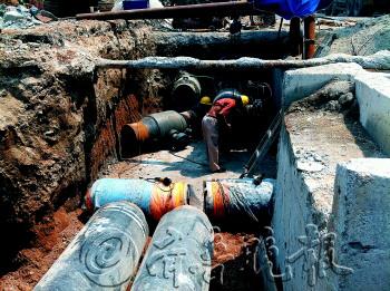 | 和平路西口,施工人员正在铺设供热管道。(资料片) 本报记者 陈玮 摄 |