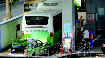 | 11日下午,在市北区南丰路的一家加气站,一位出租车师傅在给车加气。吕璐 摄 |