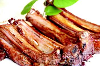 | 海上村菜馆的特色烧烤——生烤羊排。 |