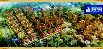 学府华园位于威海高区的核心区域,小区南邻成山体育场,北靠元宝山紧邻金海湾海水浴场和锦华高尔夫球场,西侧一墙之隔即为哈工大,东靠威海一中,门前即为城市主干道文化二路,向东通往市政府。项目分三期开发,是由58栋楼,2681户组成的一个大型生活小区。小区占地面积27万平方米,建筑面积40万平方米,其中商业设施7000平方米。小区内有自己的小学,幼儿园,及篮球场、足球场等生活配套设施。目前,项目一期伴山蓝庭已经销售完毕,正在热销的是“学府华园”,有5栋花园洋房,8栋小高层,3栋多层组成。