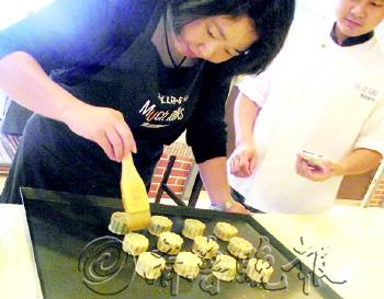 中秋节将至,吃月饼是传统习俗。今年不少蛋糕店推出月饼DIY活动。 其实DIY月饼很简单,家里有豆浆机的可以自己制作豆沙,做豆沙馅的月饼。只是做月饼的面要很细致,不然吃起来会有疙瘩。做月饼的面是用面粉和黄油和,不需加水,这样做出来的月饼很软。 在蛋糕店里做月饼DIY时,月饼馅一般都是事先准备好的,和好面后,把一大块面分成均等的面团,擀成面皮,把事先准备好的馅放到面皮上,包成一个团,再把包好馅的面团放进月饼模具里就可以了。 文/片 本报记者 邹俊美