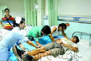 本报济南9月14日讯(记者 杜洪雷) 14日晚上9时10分许,经营气球生意的摊贩小李在济南洪楼广场附近与城管人员发生争执,23岁的小李被打成脑震荡。 14日晚9时20分许,有市民打电话称在洪楼广场附近几名城管打一个小贩。记者从现场目击者口中获悉,事件发生之后,有市民拨打110报警,可是城管人员已经离开现场。记者随后来到济南市中心医院,被打伤的摊贩就在此进行医治。 在医院急救中心,记者见到刚拍完片的小李及其朋友小郭和李强。小李躺在移动病床上,看上去很痛苦的样子。“医生说,小李有脑震荡,需要进行治疗观察。”小郭说。 据小郭讲,她和小李都是邹城人,刚来济南十多天。“小李会做气球手工艺,我们靠卖气球赚钱,还做了一个小推车。”14日晚9时10分许,他们在洪楼广场附近卖气球时,多名城管突然过来,问了一句:“卖东西了吗?”他们承认卖了一个,随后城管就上来推车。 小李死死地抱住推车不松手。“这个过程中,双方都说了一些不文明的语言,他们就摁住小李的头打。两三分钟后,小李倒在了地上。”李强称,这时有很多群众围了上来,指责城管打人,随后城管人员离开现场。李强看到朋友倒在地上不动,立即拨打了120。 随后,记者拨打了历城区城市管理行政执法局的值班电话,值班人员称不了解此事。记者提出让值班人员转告相关负责人,希望了解此事经过,但截至15日零时30分,也未接到回音。
