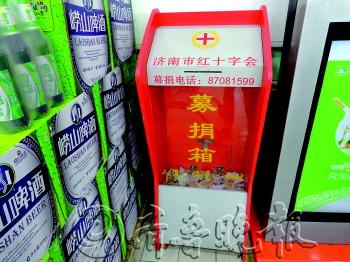 | 历下大润发的募捐箱内善款寥寥无几,旁边还堆放着啤酒。 |