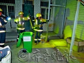 本报96706热线消息(记者 尉伟) 9月12日傍晚,在历黄路北头一居民院内,一个标有“内有毒蛇,请勿靠近”字样的垃圾桶让不少居民心头一颤。济南公安消防十二中队的官兵从这个垃圾桶内拎出一条近两米长、手腕多粗的大花蛇。 12日下午,在历黄路北头一居民院内,一居民下楼倒垃圾。他刚掀开垃圾盖就被吓了一跳,随即又关上了,“垃圾桶里盘着一条大花蛇,身子有手腕那么粗。” 为了防止其他来倒垃圾的居民被蛇咬伤,有居民就将一张印有“内有毒蛇,请勿靠近”字样的纸张贴在了桶身上。 济南公安消防十二中队的官兵接警后赶来,戴上手套后,两名消防战士各自分工:一个用粗棍的一端摁住蛇头,一个则抓住蛇尾将其拎起。然后,两人合力将蛇引入事先准备好的编织袋内。经观察,有市民表示这是条大王蛇,在无毒蛇中体型大长势快,在北方一些养殖场常见。 由于该居民院附近有不少宾馆饭店,有居民猜测垃圾桶内的这条蛇可能是从饭店跑出来的。随后,消防官兵将这条蛇带至市郊偏僻处放生。 (奖励线索提供人方先生30元)