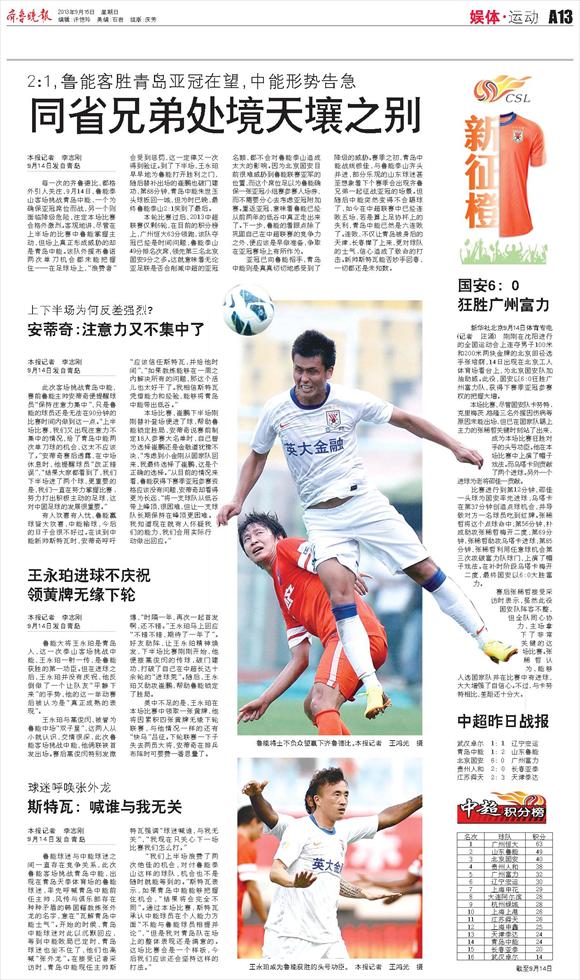 中超昨日战报
