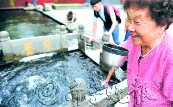 15日,在章丘市百脉泉公园内,清澈的墨泉泉水让游客忍不住舀起来品尝。当天,百脉泉水位达到61.11米。9月16日是百脉泉泉群复涌十周年的日子,在2003年9月16日复涌前,百脉泉泉群曾停喷长达909天。复涌之后,百脉泉水位曾于2005年10月7日创下65.93米的最高水位纪录。 本报记者 王媛 摄