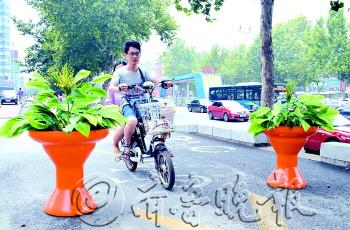 | 历山路非机动车道安上了隔离桩,机动车无法再行驶、停放。(资料片)本报记者 王媛 摄 |