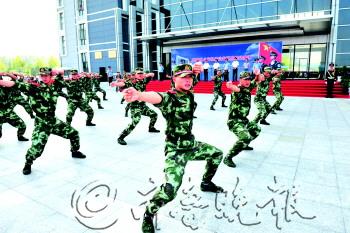 14日下午,高新区公安机关治安巡防拉动演练在烟台市大学生创业园隆重举行。高新区工委、管委、辖区各有关单位负责人参加了演练仪式。在演练指挥员的指挥下,新组建的特勤大队和区边防大队依次进行了队列、擒敌拳、警棍盾牌操和防爆阵型的演练。全体参演及列队人员以严整的警容、精湛的技能、过硬的素质,展现了高新区公安机关维护稳定、保障发展的坚强意志和立警为公、执法为民的昂扬精神。 本报记者 王永军 通讯员 刘海涛 胡洋 摄影报道