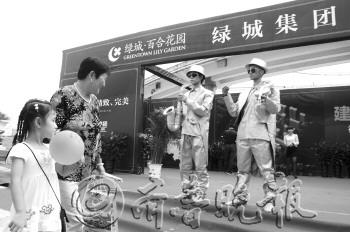 | 绿城房产展区的行为艺术表演。 本报记者 马志勇 摄 |
