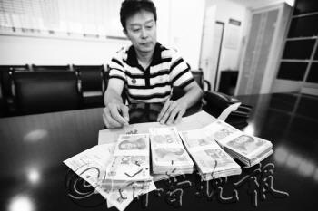 | 210万元的货款失而复得,失主郭先生感到非常庆幸。 本报记者 杨广帅 摄 |