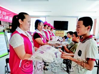 中秋节临近,15日上午,环翠楼办事处红光社区的巾帼志愿者邢威敏为社区的流动人口子女送来了运动服,谷昭萍等十多名巾帼志愿者为孩子们送来了图书,大家聚在一起以这种形式迎中秋。