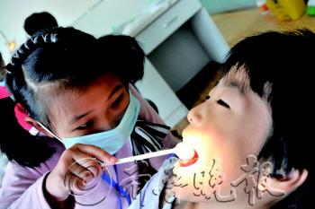 14日,本报联合淄博口腔医院在“全国爱牙日”来临之际,举行了免费为小记者们检查牙齿的活动。活动中,小记者们不仅学习了一些护牙常识,还在医生的指导下过了把“牙医瘾”,为小伙伴相互检查牙齿。