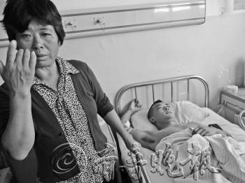 | 基本无大碍的于浩躺在病床上,他的母亲说起救人者感激得落泪。 本报记者 于飞 摄 |