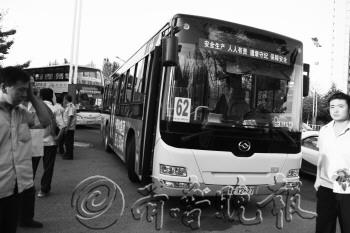 | 加不上气,一辆62路公交动弹不得。18日如果还不恢复供气,23条线路公交将停摆。 本报记者 韩逸 摄 |