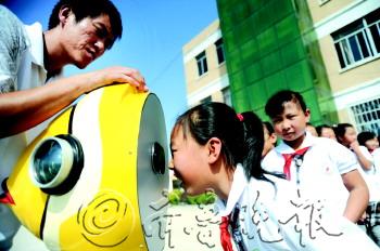 本报9月17日讯(记者 李楠楠 通讯员 林良森) 9月17日正值全国科普日活动期间,市科协、科技馆全新的一台“科普大篷车”亮相高新区东泊子小学,给同学们带去了新奇有趣的科技体验。 市科协科普部工作人员杜成龙介绍,由于乡村学校学生体验的科普项目非常少,“科普大篷车”成了很多同学眼中的“稀罕物”。 当大篷车和众多科普仪器集体亮相后,同学们纷纷跑上前争相观看。一台名为“鱼的眼睛”的科普仪器非常受欢迎,同学们轮流上前观看。讲解员说,大多数鱼的视线范围可达360度。这台仪器是模仿了鱼的视觉系统做的成像模拟器,只需把眼睛靠近观察口,就能像鱼一样观察世界。 同学们依次通过大黄鱼背面的目镜向外观望,时不时发出惊叹声,“原来鱼是这样看世界的啊,怪不得在河里捉小鱼,还没动手,它就跑了。”一位三年级的小男生惊叹道。 “希望这样的活动常来,让农村的孩子也能多增长见识。”东泊子小学校长赵铜令说。 同学们正在观看科普仪器。 本报记者 李泊静 摄