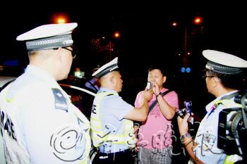 | 在长城路和阳路路口民警对金某进行酒精呼吸测试。 (图片由警方提供) |