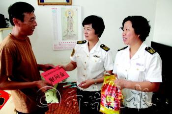 9月12日上午,交运集团青岛长途汽车站的困难职工秦怀青收到了青岛汽车总站工会送来的300元慰问金以及花生油、大米和面粉等生活必需品。临近中秋节,青岛汽车总站工会开展了“送温暖”活动,走访慰问了16名困难职工家庭,共计送去慰问金5000余元。