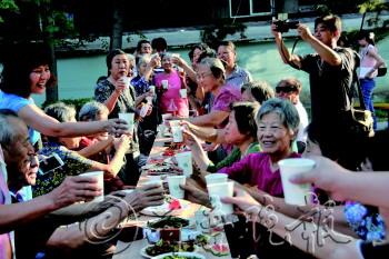 17日下午,张店河滨社区的40多位空巢老人在津津有味地吃着团圆饭。中秋节是合家团圆的节日,但对于空巢老人来说,却“每逢佳节倍思亲”,为让空巢老人度过一个温暖的中秋节,本报联合河滨社区组织空巢老人共吃中秋“团圆饭”,为老人们送上节日祝福。