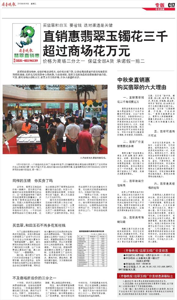 《齐鲁晚报》翡翠玉镯厂价直销惠温馨贴士
